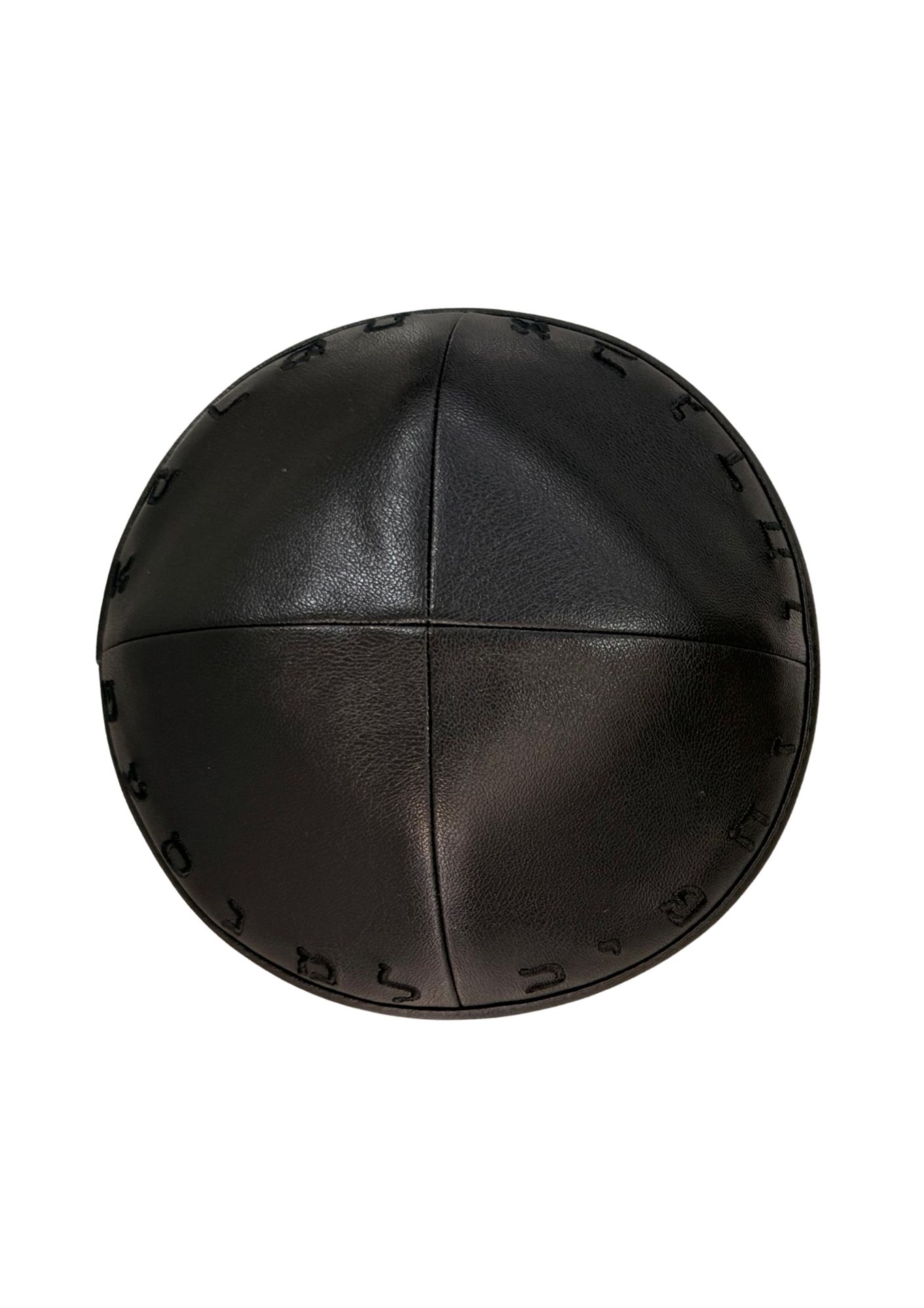 כיפת יודאיקה דמוי עור רקמת אותיות א-ב שחור