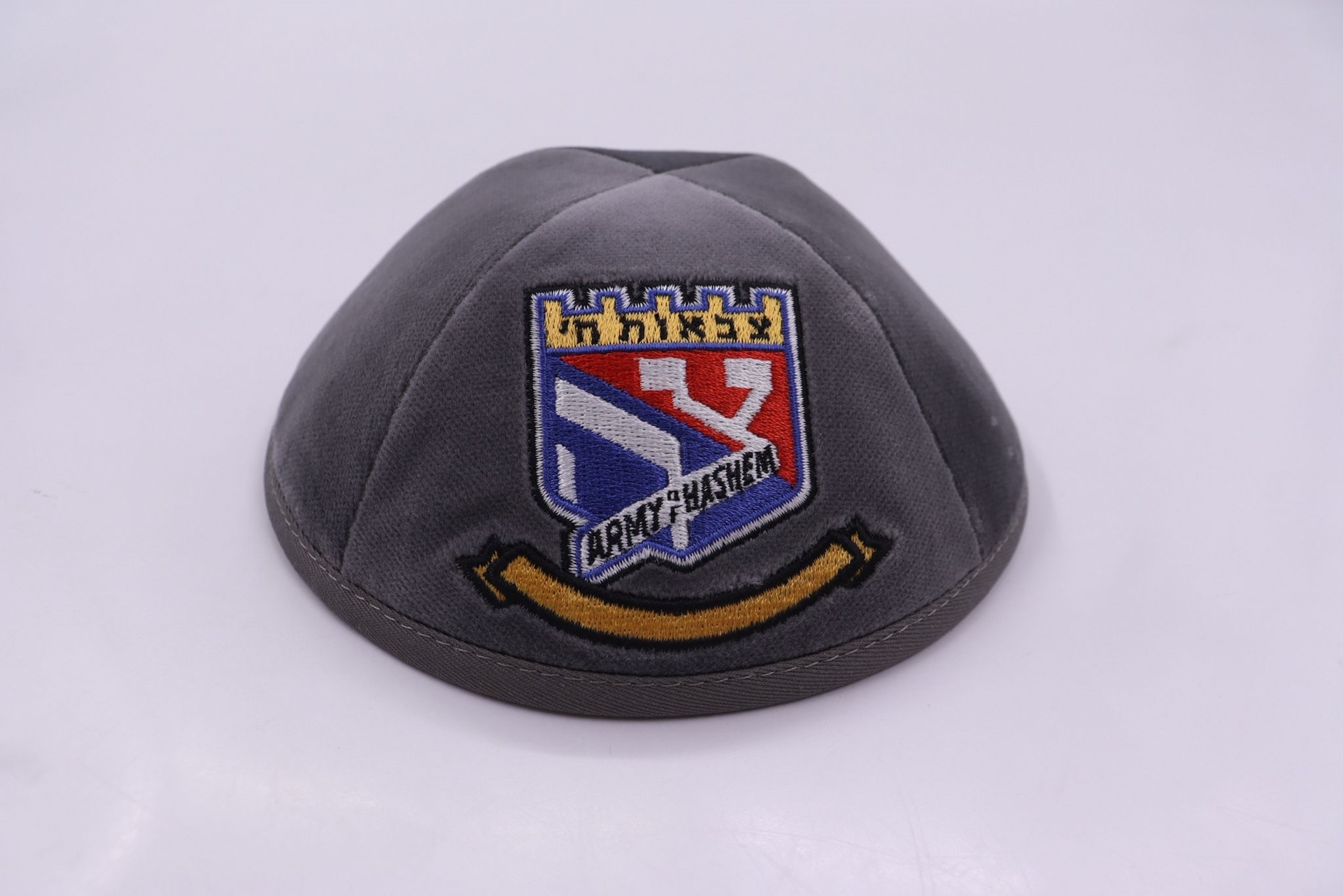 כיפת יודאיקה קטיפה רקמת צבאות ה' אפור