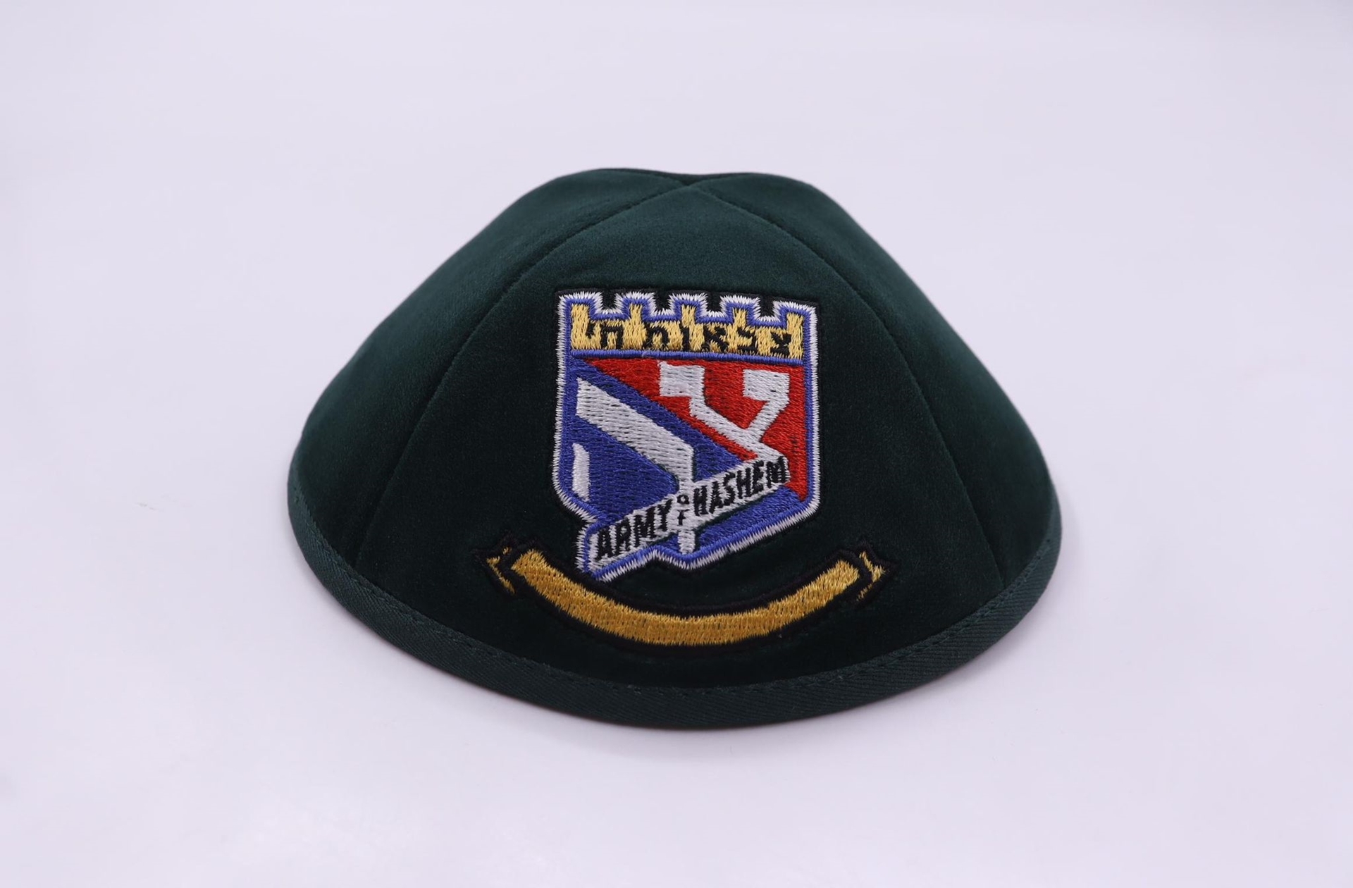כיפת יודאיקה קטיפה רקמת צבאות ה' ירוק