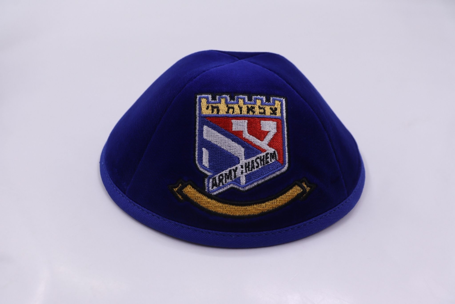 כיפת יודאיקה קטיפה רקמת צבאות ה' כחול