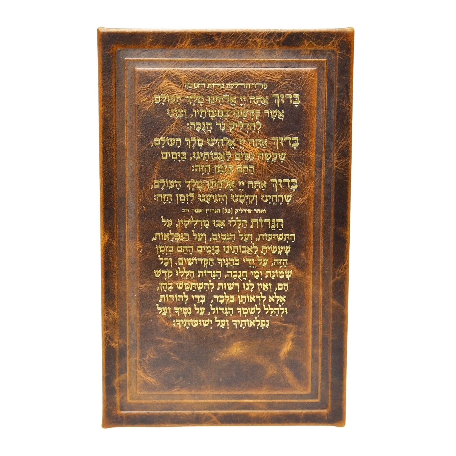 סדר הדלקת נרות חנוכה כריכת עור אמיתי